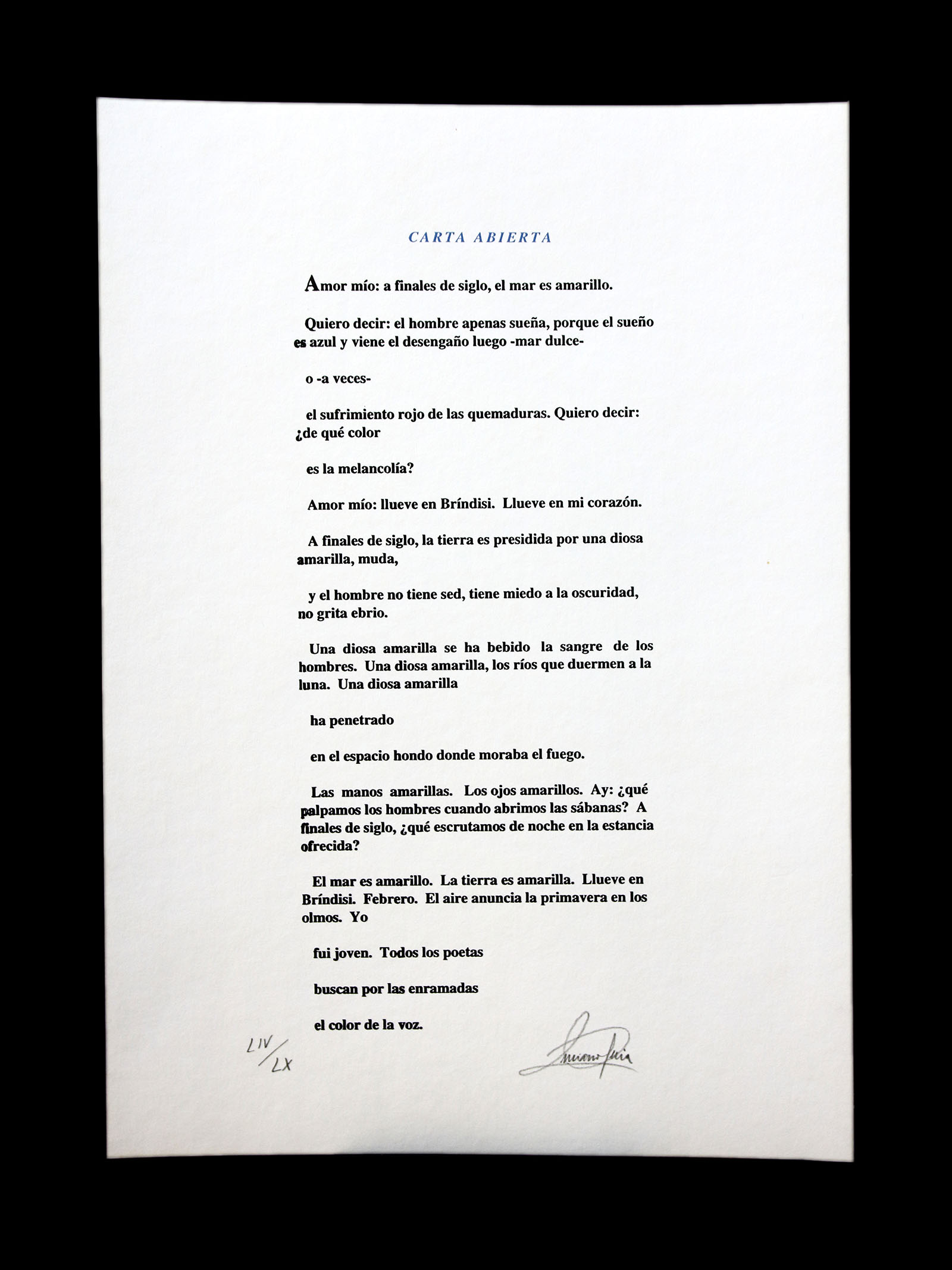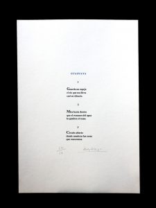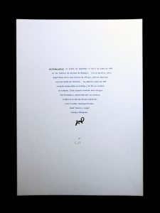 La edición consta de 200 carpetas numeradas en arábigo y de 60 en romano.