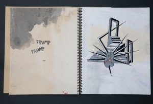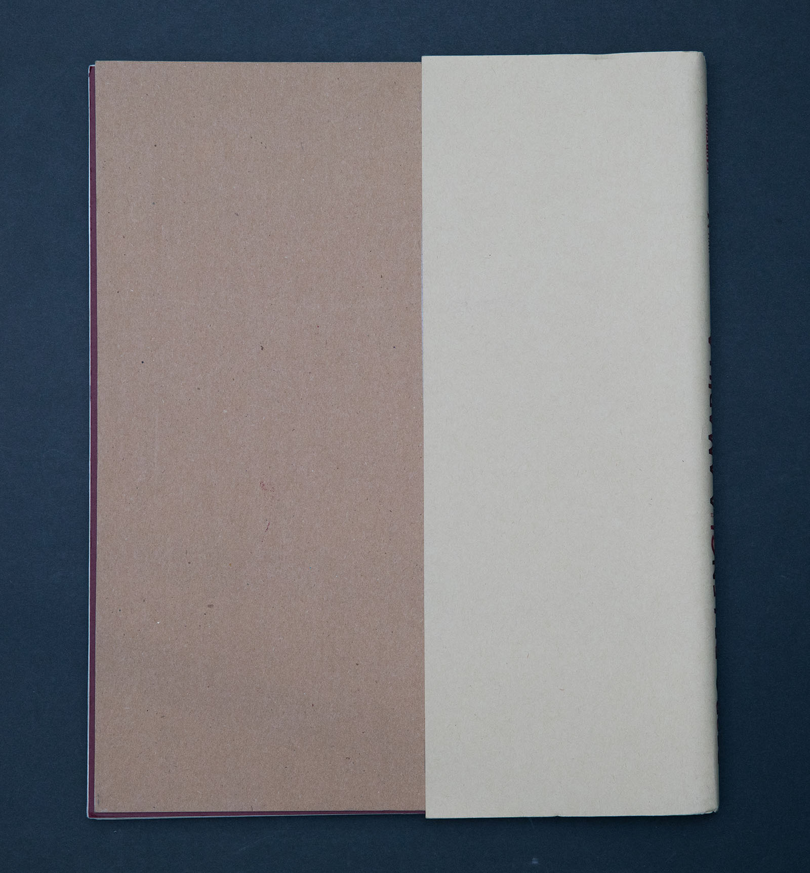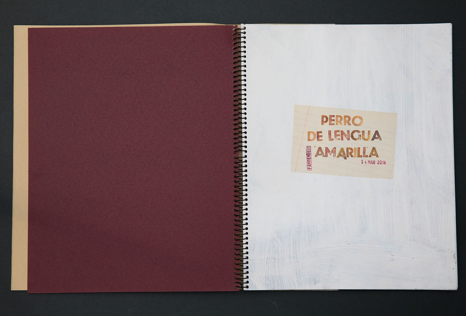 24 páginas; óleo, acrílico, tinta, calcomanías y texto rotulado a mano sobre cartulina granate y papel Súper Alfa de Guarro crema.
