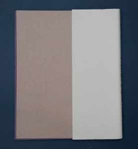Sobrecubierta de cartulina ocre, texto rotulado en t.c., sello FH en sobrecubierta y lomo con sello de fechas; 33,6 x 27,5 cm.; cubierta de display comercial, texto rotulado en t.c., sello FH y sello de fechas sobre papel pautado adhesivado en cubierta; contracubierta de cartoncillo marrón.
